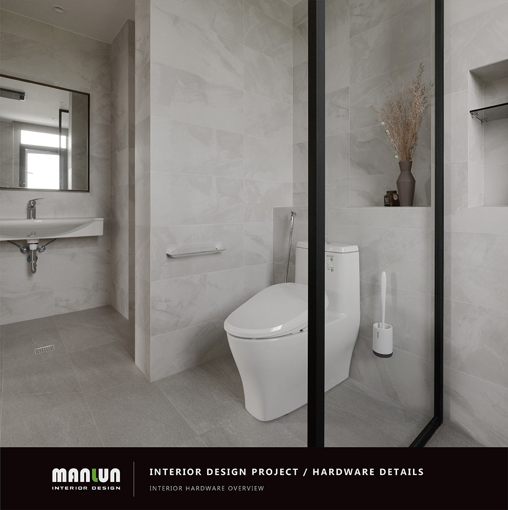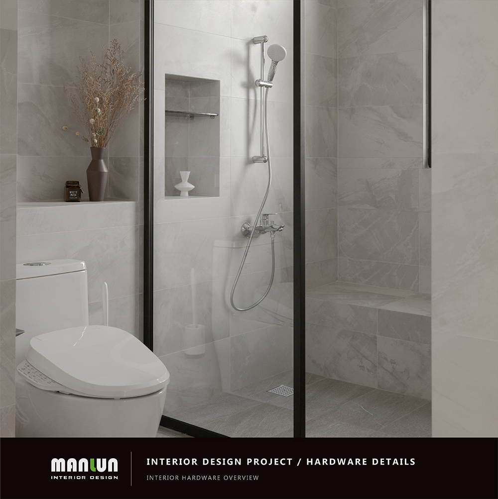地坪必須堅硬平整且具備高防滑係數,尤其在濕潤或肥皂水環境下更需防滑,浴室內不應有高差門檻,且排水設計需確保水流暢通、減少積水,牆面、天花建議選用防水、防霉、易清潔材質,這些細節雖不如家具一目了然,卻直接影響長期使用的安全與維護成本。