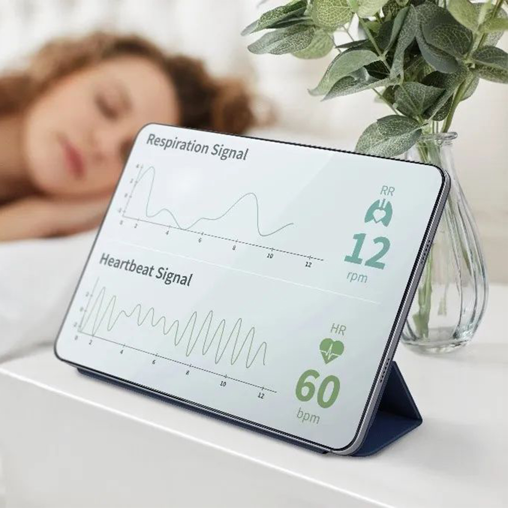 無接觸偵測人體生理數據:呼吸率、心率、體動及睡眠狀態分析。