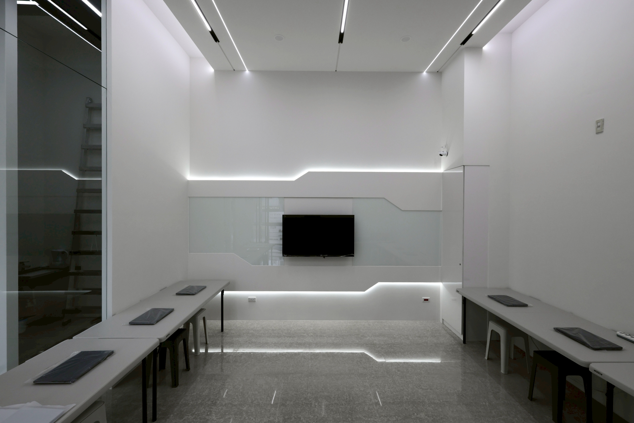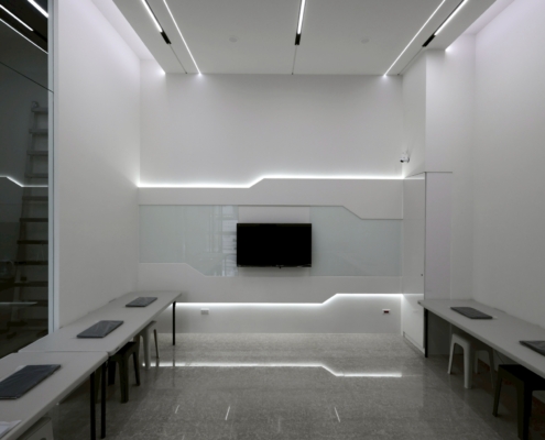 教室區延續簡約設計風格,運用線性燈光及玻璃牆面,維持空間明亮舒適,同時提供學員專注且放鬆的學習氛圍。