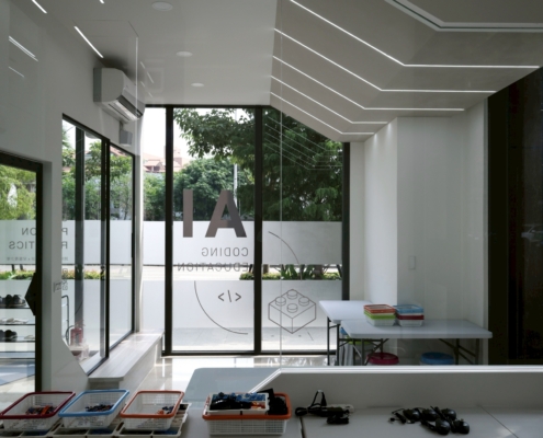 整體設計在光影與線條之間取得平衡,展現出現代教育空間的極簡美學,讓學習環境更具啟發性與專業氣質。
