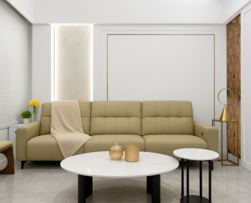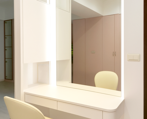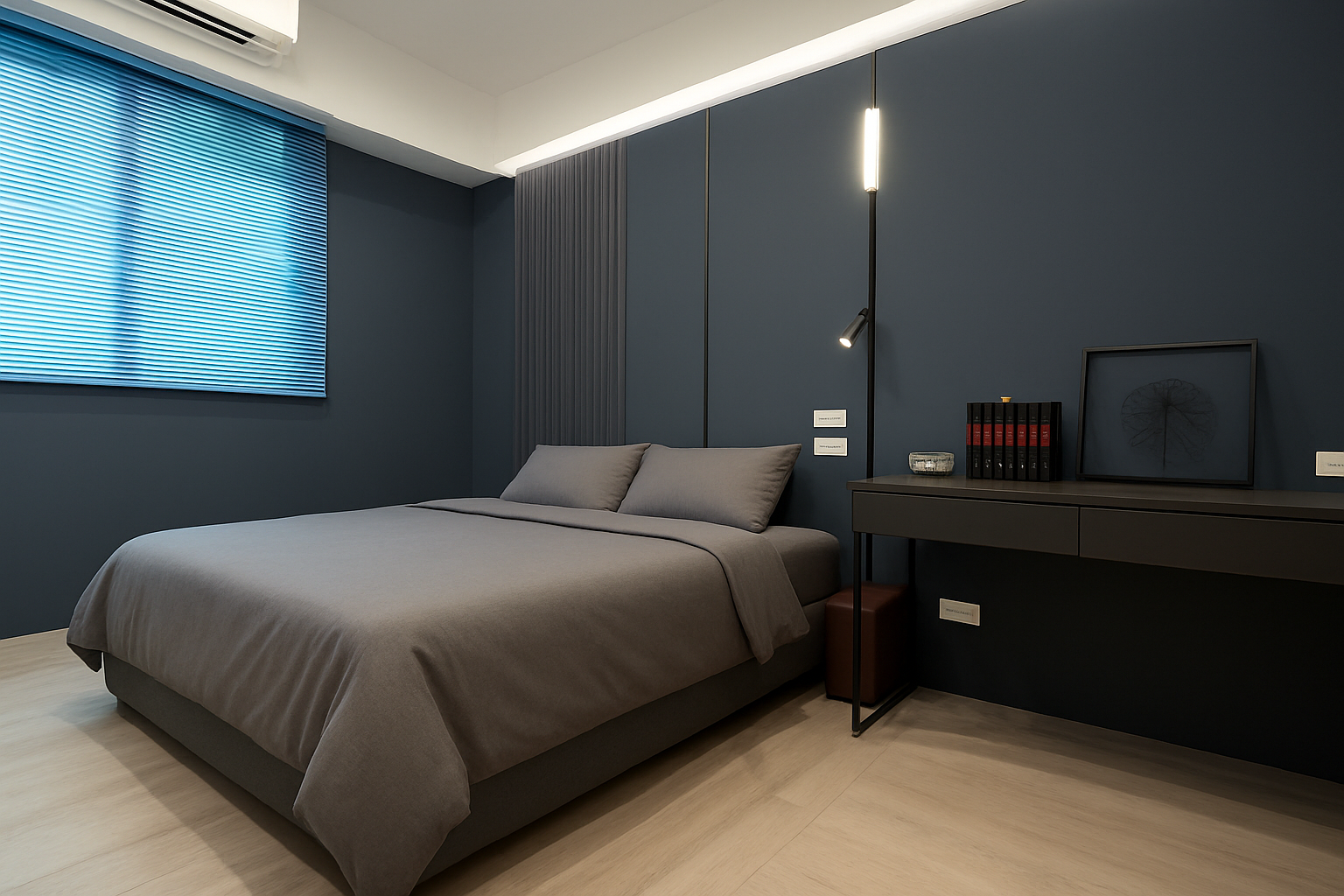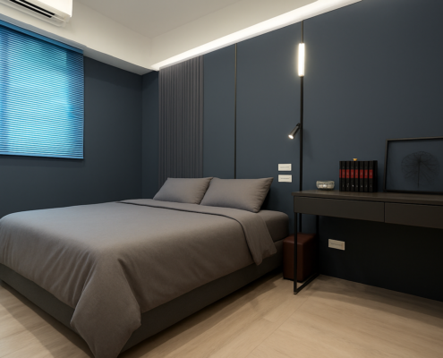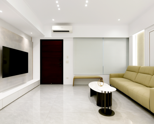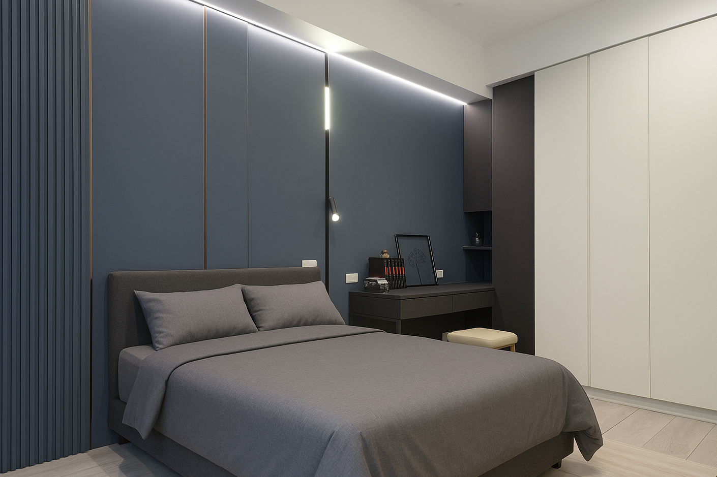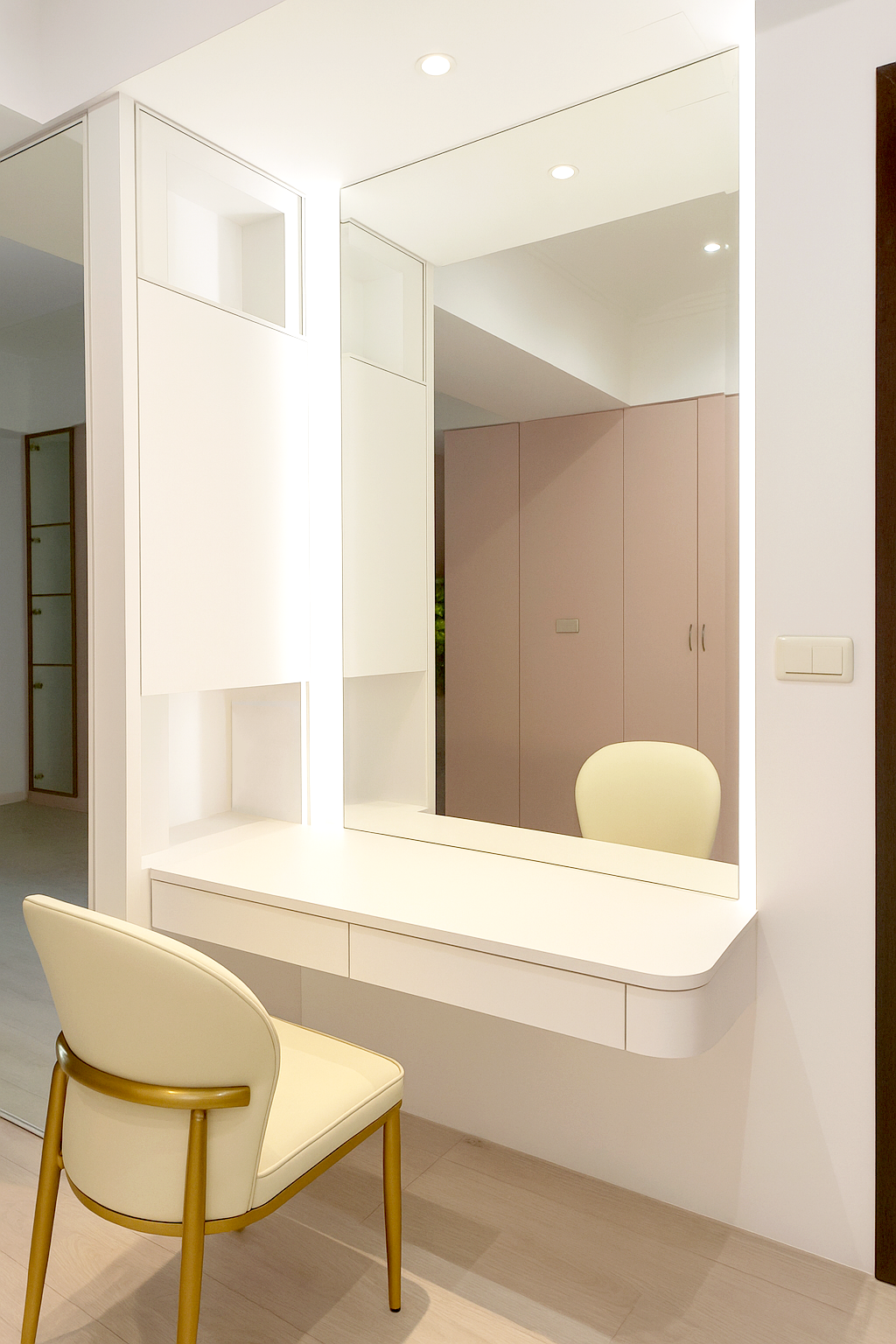 客戶指定每個房間的主視覺顏色都不一樣,且以美式現代風為設計基礎,融合典雅的古典元素與俐落現代線條,為退休生活營造出一處優雅大器且舒適宜居的理想宅邸。