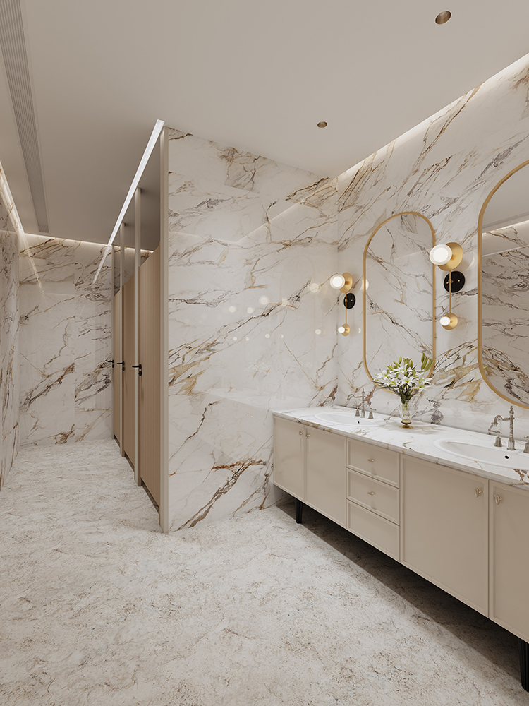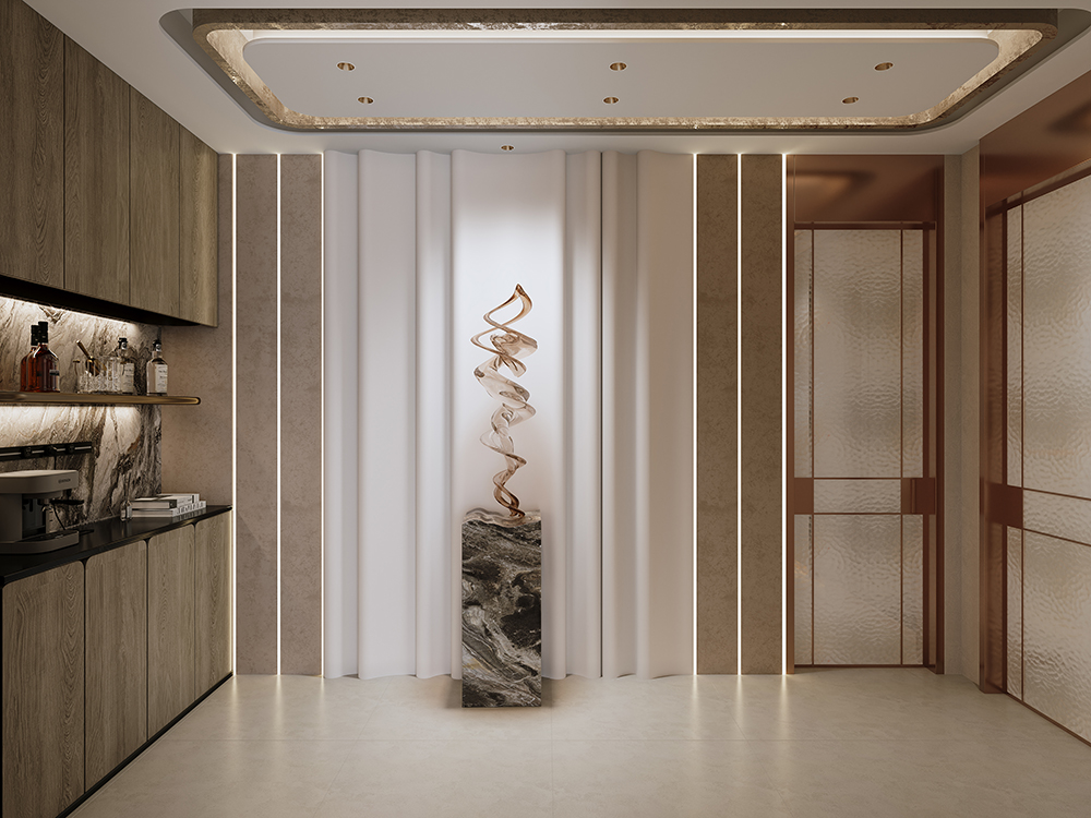主要材料|大板磚、圓弧造型、藝術燈、鏡面、鐵件、鍍鈦飾條、燈條、藝術漆、裝置藝術、打卡牆面